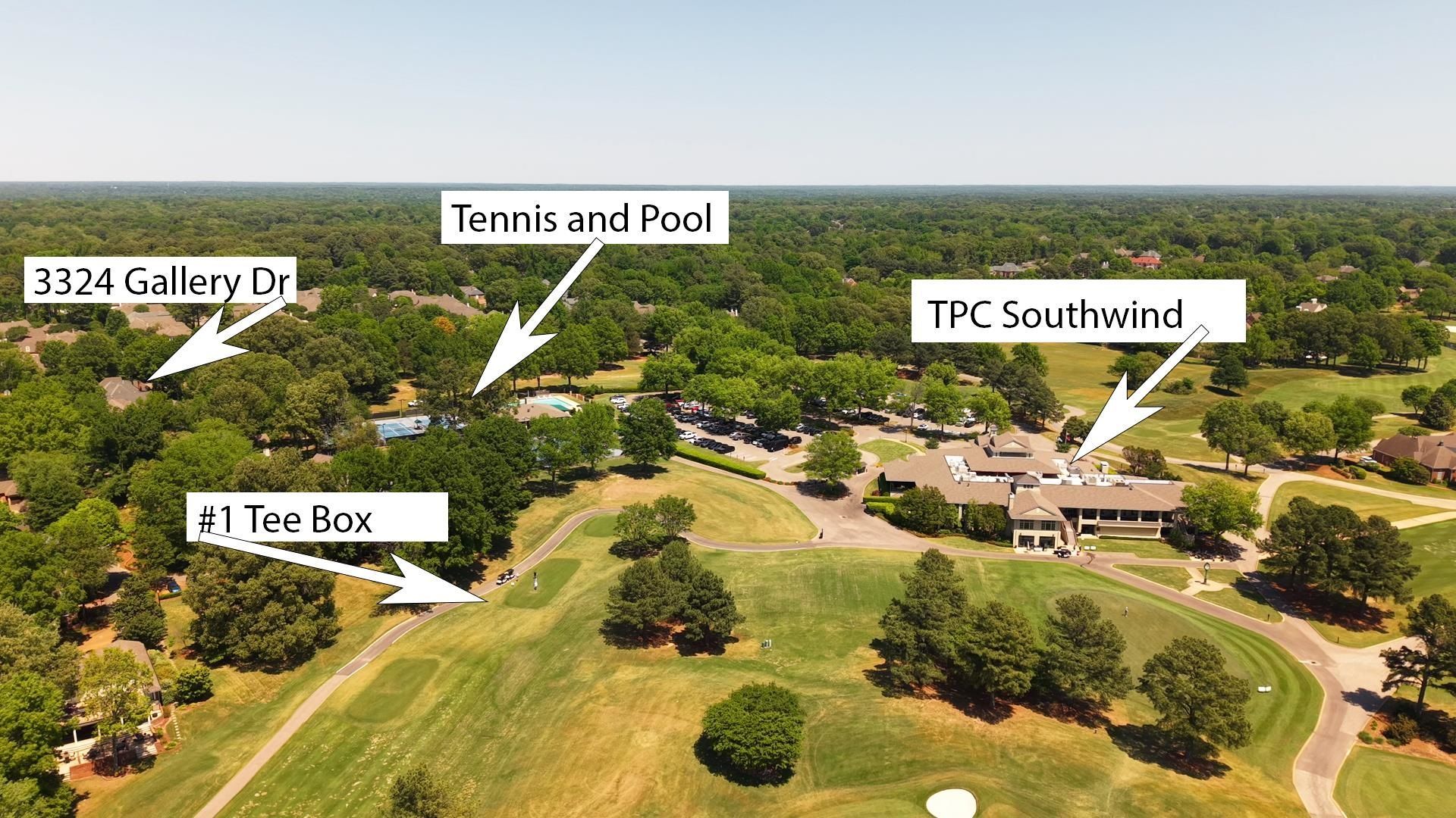 NO CITY TAXES! 24/7 GUARDED AND GATED NEIGHBORHOOD OF SOUTHWIND. The most charming home on Gallery Dr.! Iron posts on front porch are from the French Quarter in New Orleans! This is such a well maintained home! Primary bedroom down with a wonderful fireplace, 2 walk-in closets and access to the very private outdoor courtyard. Zero maintenance home! Walk to tennis courts, pool, #1 tee box, pro-shop and dining room of TPC SOUTHWIND! You can see the # tee from the upstairs balcony! All bedrooms have private baths. Huge gameroom with new skylights that provide loads of natural light! Gas cooking! Gorgeous kitchen! Good sized laundry room. Beautiful hardwood floors. Downstairs ofc could be converted to 2nd bedroom down. Fun wine room at the end of the hallway. Great storage! Excellent location!